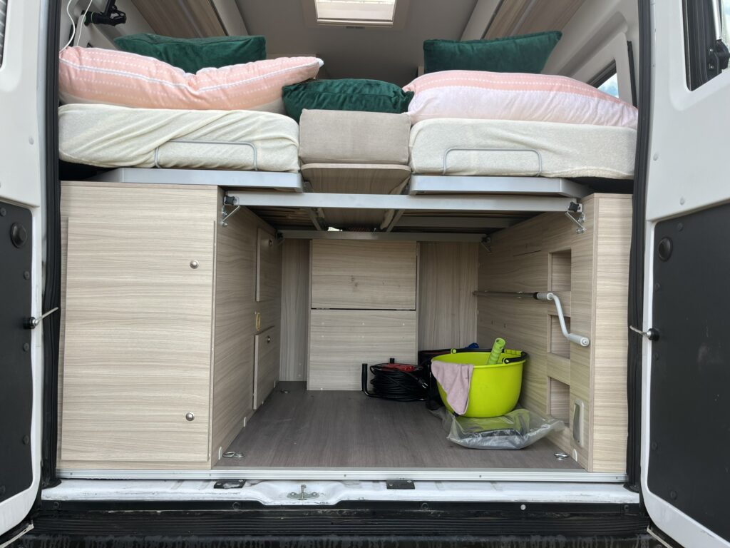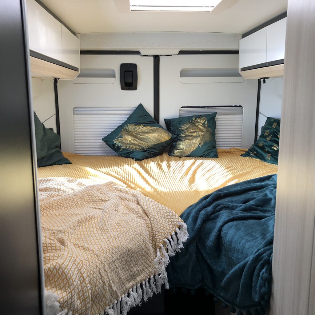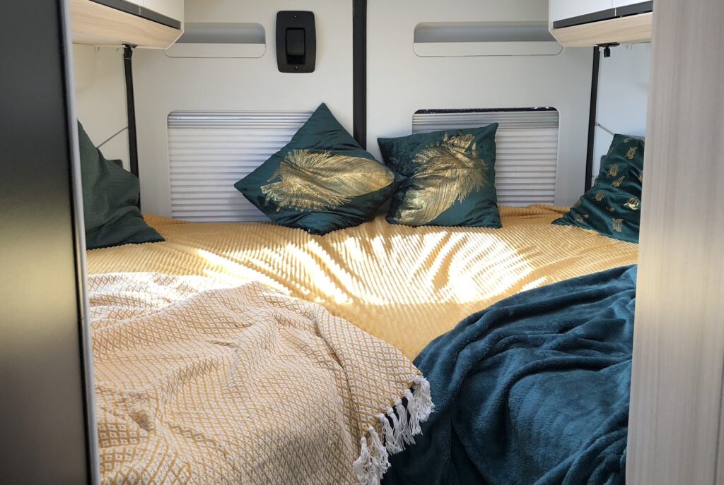 A až 4 svezou. Na cestu se můžete vypravit ve 4. Ve Twince se ale pohodlně vyspíte ve dvou dospělých, navíc zvládne i jedno menší dítě. Postel je asymetrická. Její rozměry jsou: (d) 180/193 × (š) 194 cm. V podélném spaní se pak dobře vyspí i dlouhán. Díky uspořádání lůžek se z nočního čůrání nestane noční můra pro vás ani vašeho parťáka.